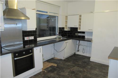 Two UPVC windows to the rear. UPVC back door. Laminate flooring. Radiator. Range of base and wall units. 1.5 bowl stainless steel sink. Plumbing for washing machine.