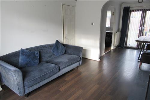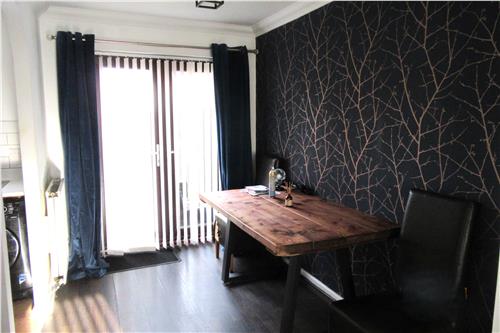 Open plan into lounge and kitchen. Laminate flooring. Double patio doors. Central heating radiator.