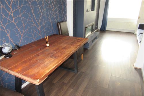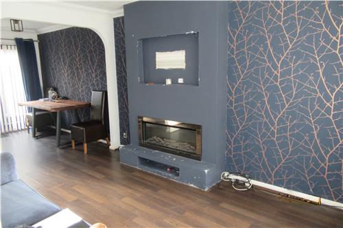 UPVC window to the front. Open plan lounge/dining room. Laminate flooring. Central heating radiator. Electric fire. Coving. Centre light.