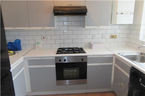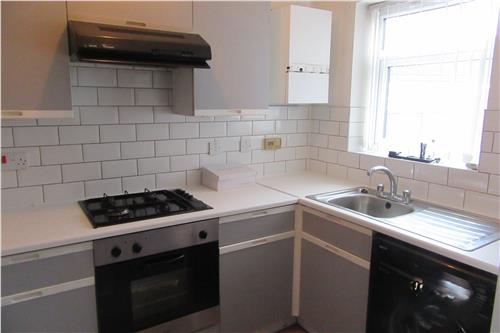 Open plan from dining room. Fitted with a range of floor and wall units. UPVC window to the rear. Gas hob, electric oven, stainless steel sink, plumbing for washing machine, tile effect laminate flooring. Part tiled walls. Extractor hood.