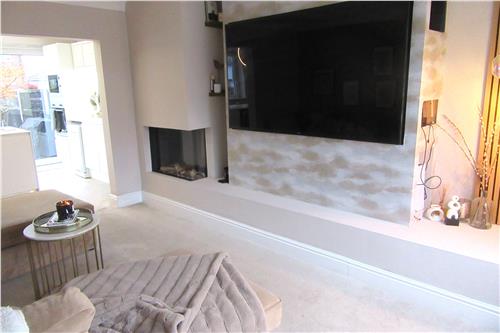 UPVC windows to the front. Door from hall. Open plan into kitchen. Central heating radiator. Feature electric fire. Coving.