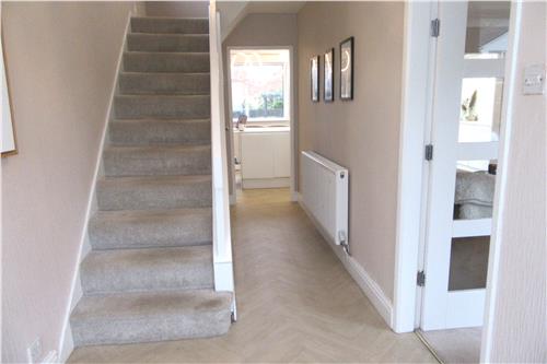 Large hallway with laminate flooring. UPVC window to the front. UPVC front door. Central heating radiator. Stairs to the first floor.