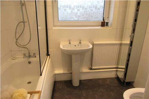 UPVC window to the front. Panelled bath. Low level wc. Pedestal wash hand basin. Tile effect laminate. Fully tiled walls. Chrom shower. Spotlights.