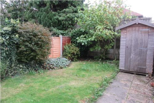 Enclosed rear garden. Laid to lawn with a patio area. Shrub borders. Garden shed.
